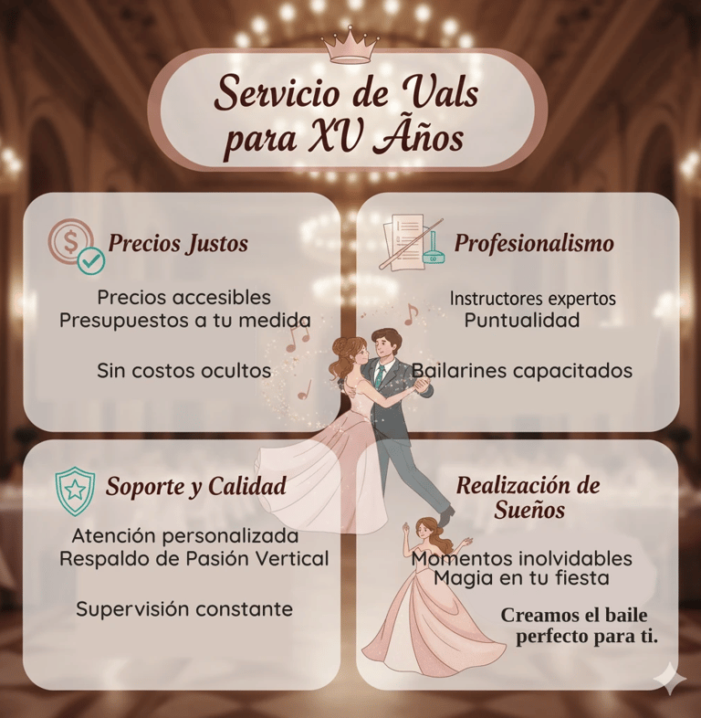 Montajes coreográficos urgentes, chambelanes jóvenes y presentables, trabajamos bajo el respaldo de Pasión Vertical. Conoce los beneficios dando click aquí